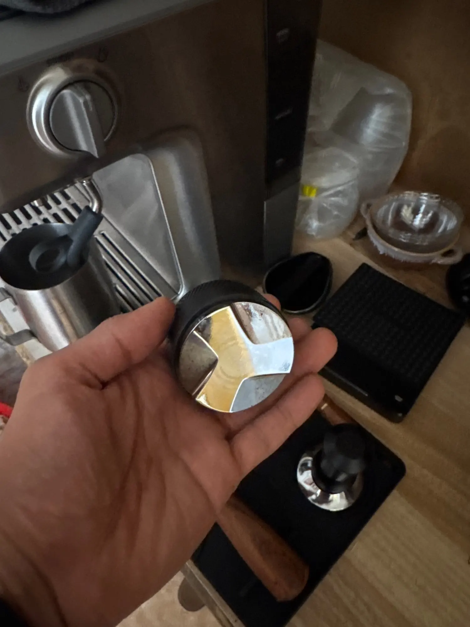 Réglage de profondeur : hauteur ajustable pour s’adapter à ta dose de café et à ton porte-filtre.