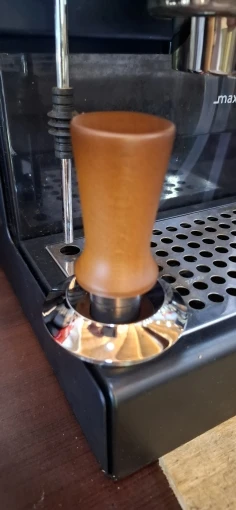 Un tamper espresso à ressort, en bois de hêtre et acier inoxydable 304, conçu pour un tassage constant et précis. L’outil idéal pour les baristas et les amateurs de café qui veulent une extraction régulière à chaque shot.