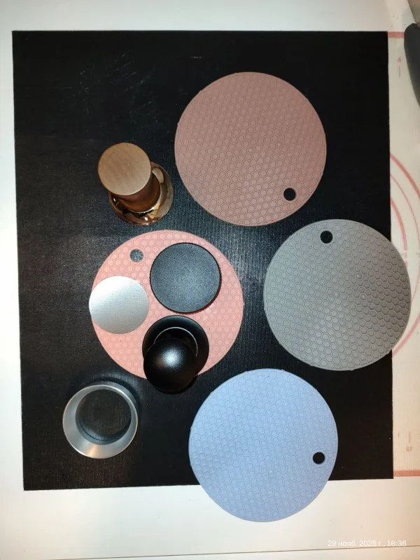 - Type : tamper espresso à ressort interne, pression constante